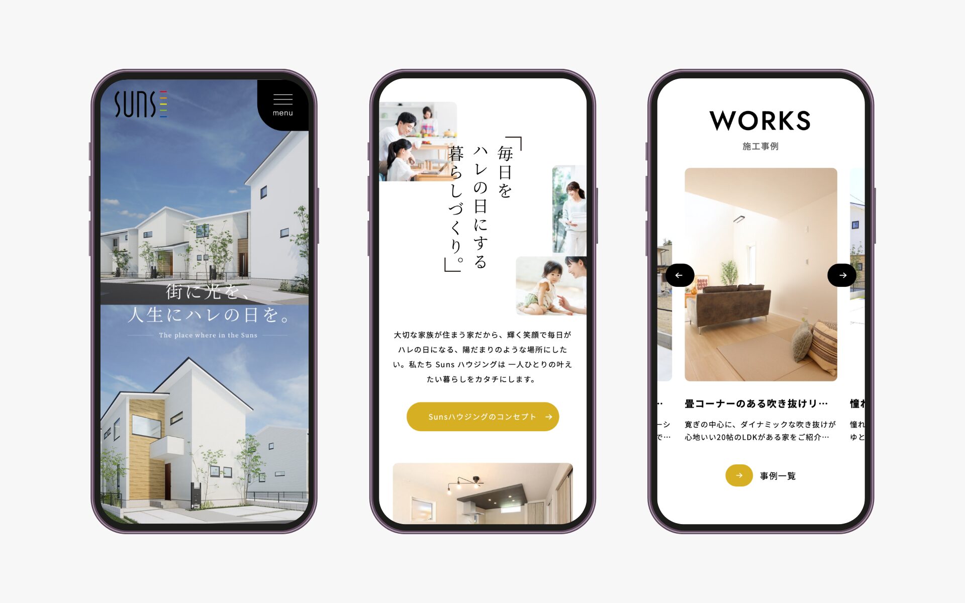 Sunsハウジング様らしさが自然と浮かび上がるサイトを目指して制作が進んでいきました。